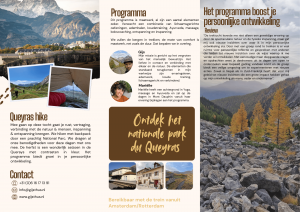 Mee gaan op deze variant gaat jullie rust, vertraging, verbinding met de natuur & mensen, inspanning & ontspanning opleveren. Vanuit een thuisbasis gaan we op verkenning. We combineren lichaamsgerichte oefeningen met ervaringsleren om tot nieuwe inzichten te komen over onszelf en elkaar. Het programma biedt groei in persoonlijke ontwikkeling.